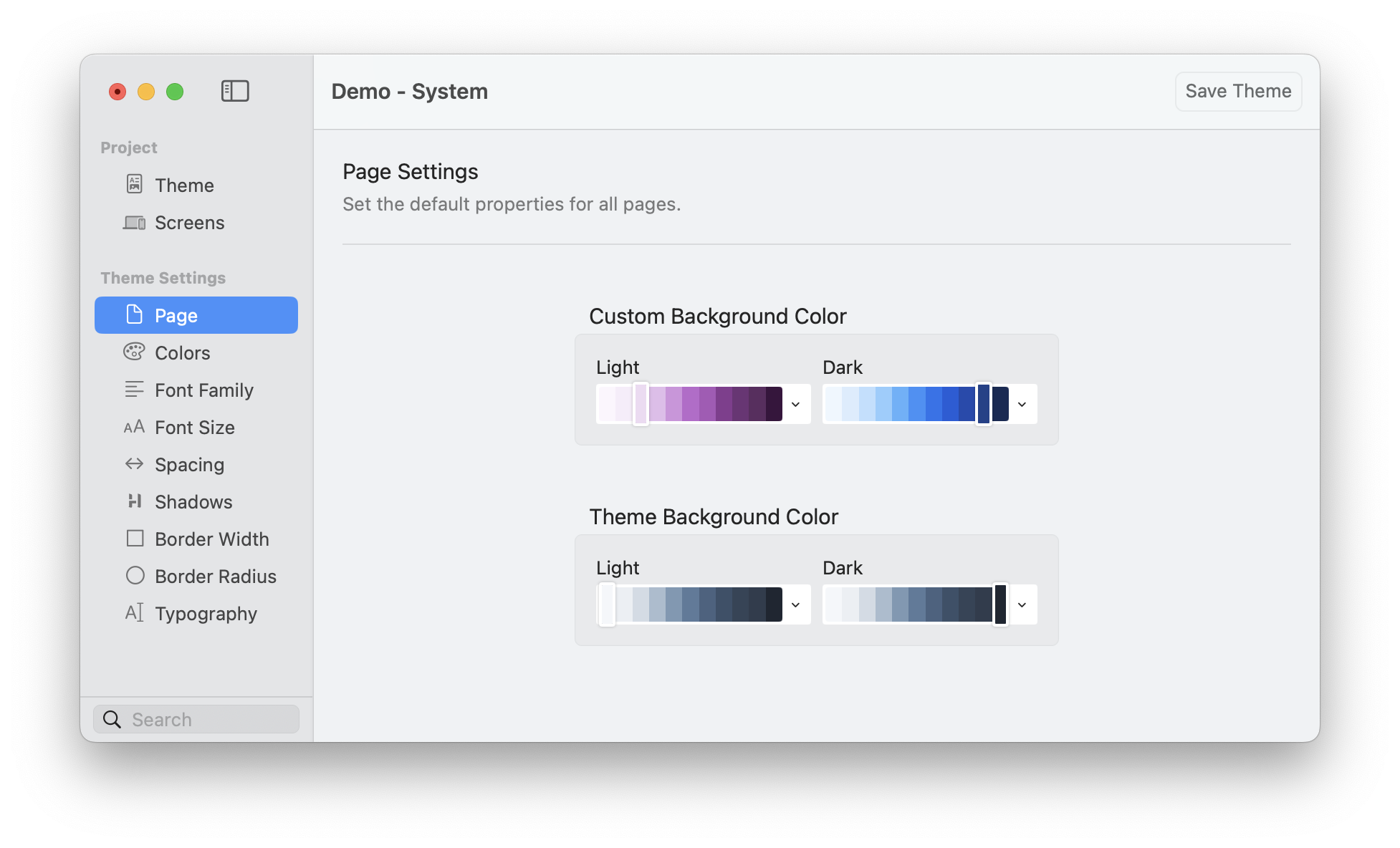 Every colour in Elements supports Dark and Light Mode, this means you can change the colour of text, backgrounds, buttons, borders, and more, all based on the users system settings.